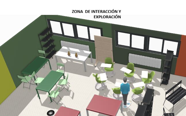 El diseño del aula se basa en el modelo de aula del programa AdFE, estructurado en cuatro zonas de aprendizaje: